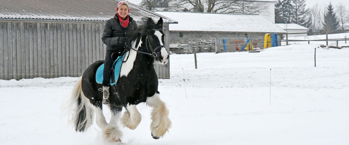 „Endlich ohne Fliegenmaske auf dem Reitplatz!“