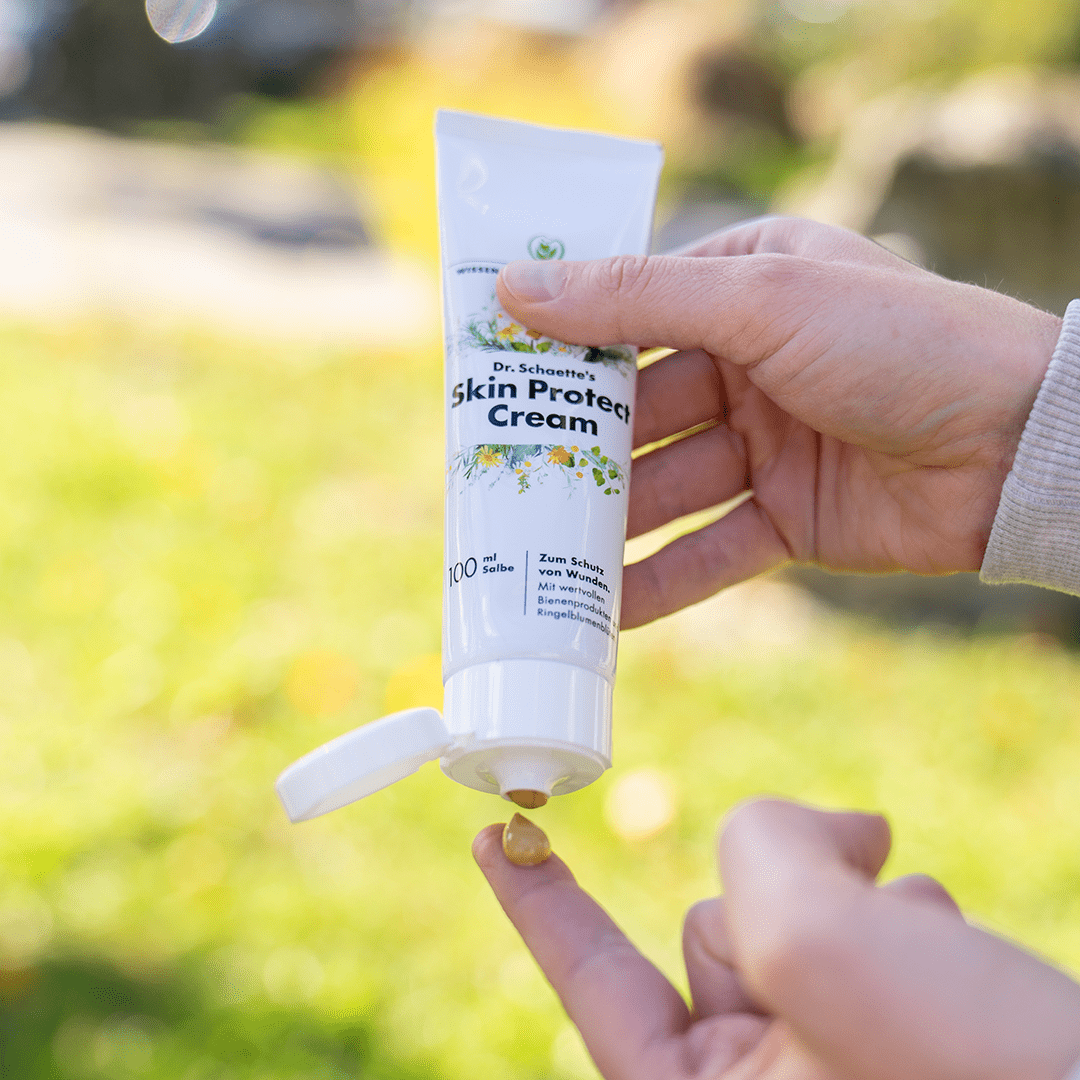 Dr. Schaette’s Skin Protect Cream vereint Bienen- und Kräuterkraft zu einer wertvollen Salbenkomposition. Ob zur pflegenden Wundrandversorgung, für beanspruchte Hautpartien oder zum Schutz vor äußeren Einflüssen, die Haut wird optimal in ihrer Funktion unterstützt.